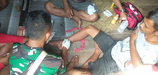 “Tadinya saya sempat panik saat melihat luka yang banyak mengeluarkan darah, bersyukur dipertemukan dengan bapak tentara dan akhirnya luka saya bisa dijahit” ucap bapak Kolik.