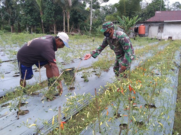 TMMD Ke-111 di Desa Kuala Mandor B Anggota Kodim 1207/Pontianak Dampingi Petani Cabai Yang Sedang Panen