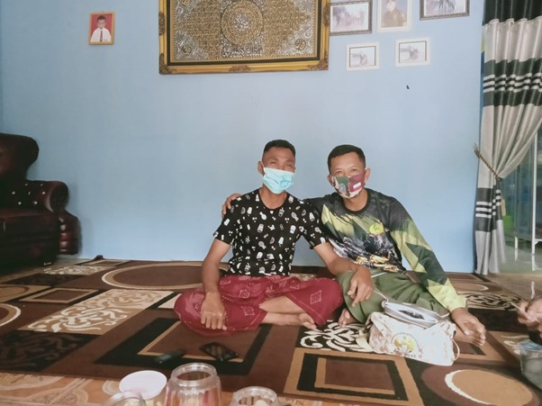 Rasa bahagia dan senang kedua nya bertemu di rumah pak dusun maju jaya Bapak Teguh merupakan teman lamanya.Yang tempat tinggal nya di lokasi TMMD reguler ke-111,yang merupakan sasaran pisiknya membangun rabat beton berupa jalan sepanjang 1.200m.