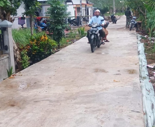 Kubu Raya – Meskipun pembangunan jalan rabat beton yang dibangun oleh satgas TMMD ke-111 Kodim 1207/Pontianak belum selesai 100%, namun warga setempat sudah mulai bisa menggunakan sebagian jalan yang dibangun untuk aktifitas sehari-hari, Senin (05/07/2021).
