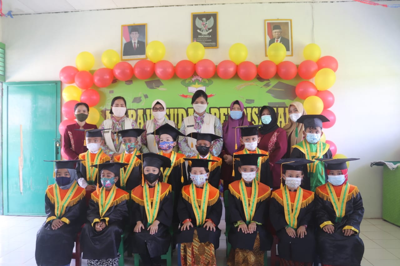 Putussibau – Ketua Yayasan Kartika Cabang XVII – 14 Kodim 1206/Putussibau Ny. Denik Bunga Jemi Oktis Oil, memimpin acara seremonial perpisahan dan wisuda sebanyak 31 murid TK (Taman Kanak-Kanak) Kartika Kartika Cabang XVII- 14 Kodim 1206/PSB di Aula TK Kartika XVII 14 Makodim 1206/PSB, Sabtu (19/06/2021).