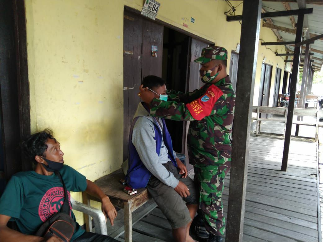 Danramil 06/Putussibau Utara Kapten Inf Nanang Mengungkapkan “Kami terus mendukung program pemerintah untuk mencegah penyebaran Covid-19 dengan himbauan tertib menerapkan 5 M bagi warga masyarakat di lingkungan binaan,” ujar Danramil.