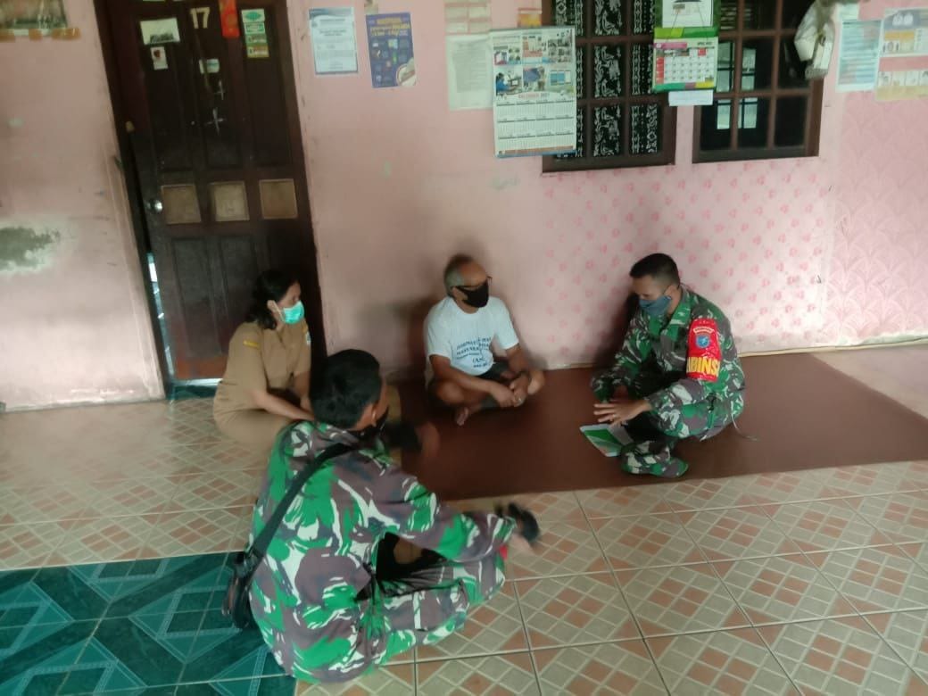 Babinsa Kopda Robertus menyambangi kediaman bapak Antonius Linggat di Desa Pukau Manak , Kecamatan Embaloh Hulu, Kabupaten Kapuas Hulu, Rabu (16/06/2021).