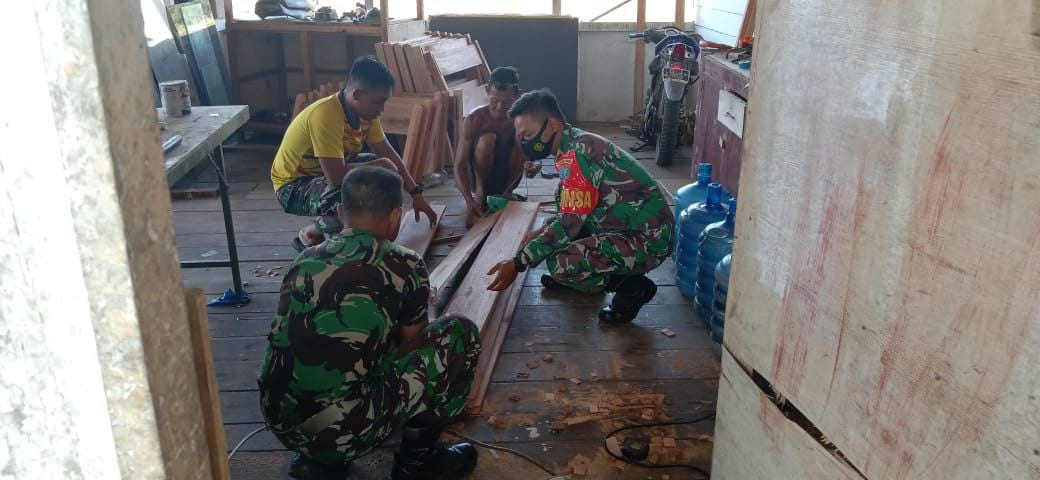 Badau- Upaya membangun kerjasama antara masyarakat dengan TNI telah dilaksanakan oleh Babinsa 1206-04/Badau Sertu Milinnius ikut turun tangan langsung membantu pembuatan tempat tidur untuk warga yang di karantina di kecamatan Badau, Kabupaten Kapuas Hulu . Selasa (01/06/21).