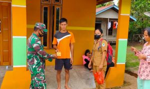 Putussibau – Terus tingkatkan koordinasi dan sinergitas di wilayah binaan, untuk memutus mata rantai penyebaran virus corona serta membahas masalah sosial dan Kamtibmas, Babinsa Koramil 1206-06/Putussibau Utara, Serda Doni melaksanakan Komsos bersama perangkat masyarakat Desa Kedamin Darat,
