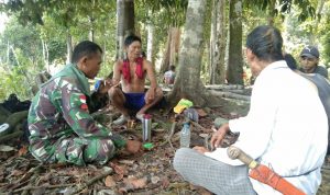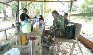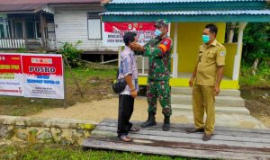 Putussibau – Terus tingkatkan koordinasi dan sinergitas di wilayah binaan, untuk memutus mata rantai penyebaran virus corona serta membahas masalah sosial dan Kamtibmas, Babinsa Koramil 1206-06/Putussibau Utara, Serda Doni melaksanakan Komsos bersama perangkat masyarakat Desa Kedamin Darat,