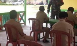 Putussibau – Terus tingkatkan koordinasi dan sinergitas di wilayah binaan, untuk memutus mata rantai penyebaran virus corona serta membahas masalah sosial dan Kamtibmas, Babinsa Koramil 1206-06/Putussibau Utara, Serda Doni melaksanakan Komsos bersama perangkat masyarakat Desa Kedamin Darat,