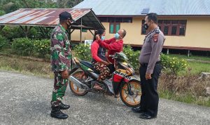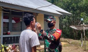 Putussibau – Terus tingkatkan koordinasi dan sinergitas di wilayah binaan, untuk memutus mata rantai penyebaran virus corona serta membahas masalah sosial dan Kamtibmas, Babinsa Koramil 1206-06/Putussibau Utara, Serda Doni melaksanakan Komsos bersama perangkat masyarakat Desa Kedamin Darat,