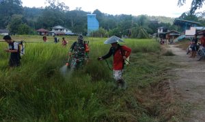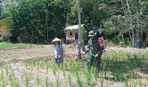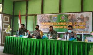Putussibau – Terus tingkatkan koordinasi dan sinergitas di wilayah binaan, untuk memutus mata rantai penyebaran virus corona serta membahas masalah sosial dan Kamtibmas, Babinsa Koramil 1206-06/Putussibau Utara, Serda Doni melaksanakan Komsos bersama perangkat masyarakat Desa Kedamin Darat,