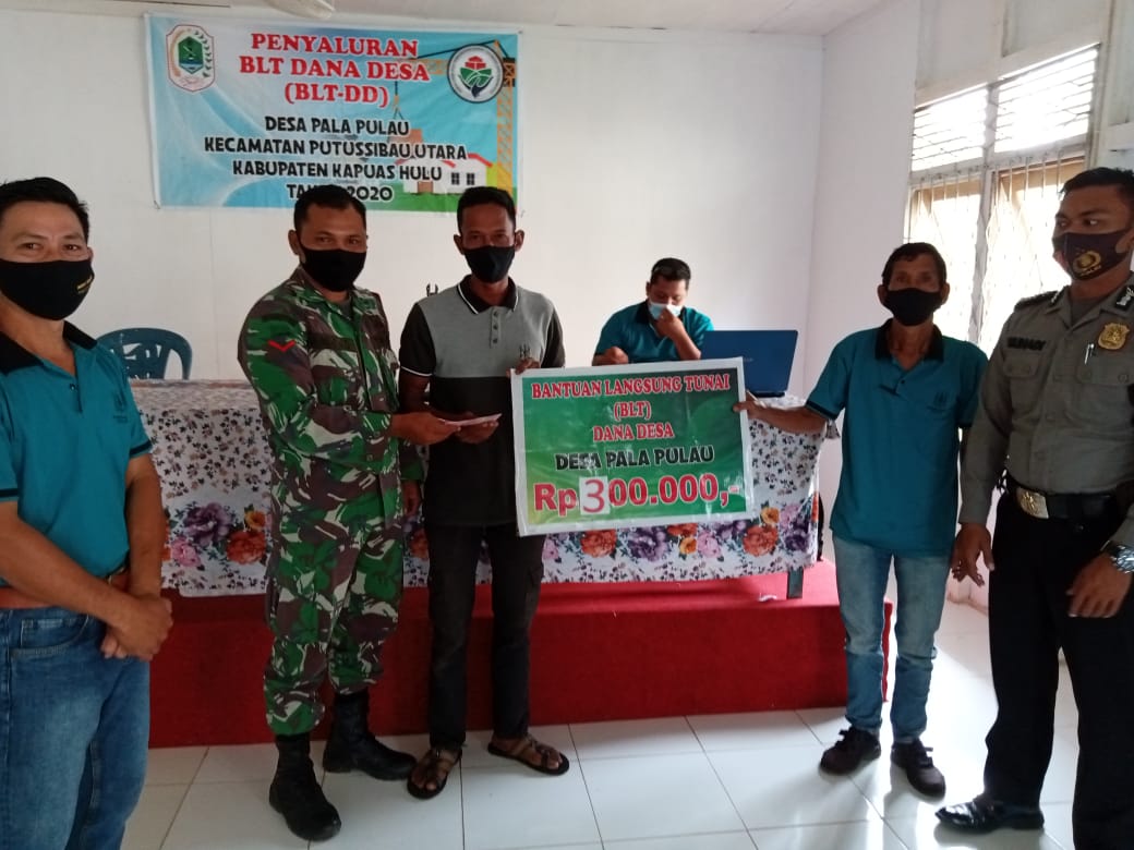 Putussibau – Guna memantau dan memastikan penyaluran Bantuan Langsung Tunai (BLT) tepat sasaran kepada masyarakat yang berhak menerima, Babinsa Koramil 1206-06/Putussibau Utara Kopda Andi Hidayah bersama Bhabinkamtibmas mendampingi penyaluran BLT di Desa pala pulau, Kecamatan Putussibau Utara, Kabupaten Kapuas Hulu,