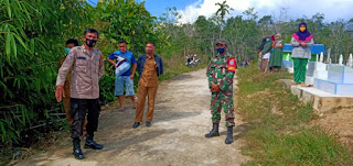 Pengkadan – Babinsa 1206-09/Jongkong bersama Kanitbimas Pengkadan Bantu warga dalam proses persiapan pemakaman warga yang terdampak COVID-19 sesuai dengan SOP ,di tanah wakaf Muslim di Desa Sirajaya Kecamatan Pengkadan Kabupaten Kapuas Hulu Kalimantan Barat. Kamis, (10/06/2021).