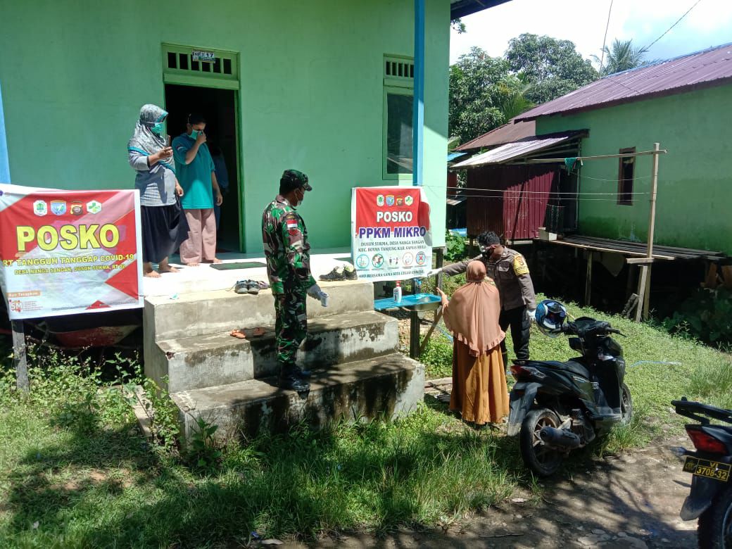 Boyan Tanjung – Anggota Koramil 1206-08/ Bunut Hilir, Babinsa Koptu Lili Jeri bersama Kepala Desa dan Babinkamtibmas Brigadir Heri Gunawan dan tim satgas covit 19 melaksanan monitoring kegiatan pelaksanaan jaga posko covit ppkm Mikro di Desa Nanga Sangan, Kec Boyan Tanjung, Minggu (06/06/2021).