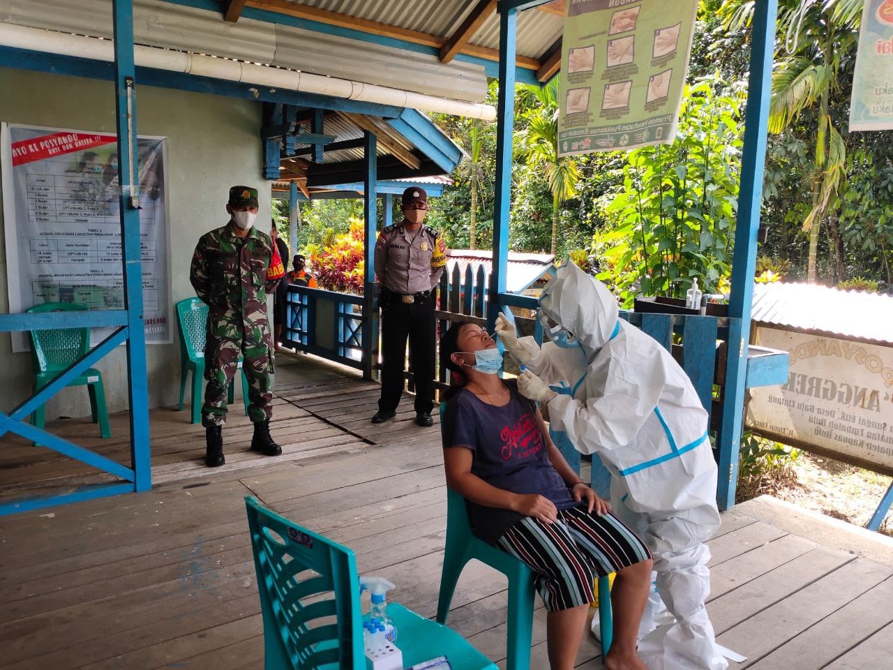 Embaloh Hulu – Babinsa Koramil 05/Embaloh Hulu Wilayah Kodim 1206/Putussibau, Kopda Robertus dan Babinkamtibmas Briptu Aswandi, kerap sekali mendampingi petugas Puskesmas Embaloh Hulu saat melacak kontak erat atau tracing contact dari warga yang terkonfirmasi positif virus corona jenis baru pemicu Covid-19, sehingga perlu di lakukan Swab Test atau Rapid Antigen yang di laksanakan di PosBindu Anggrek, Desa Sungai Utik, Kecamatan Embaloh Hulu, Selasa (01/05/2021).