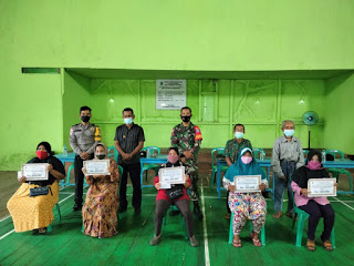 Jongkong – Terlihat Babinsa 1206-09/Jongkong Kpt Umar Solihin bantu penyaluran BLT-DD desa Jongkong Tanjung Kecamatan Jongkong. (31/05/2021)