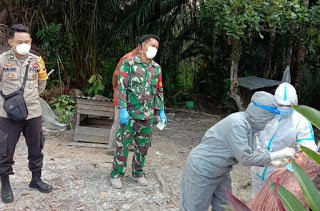 Kalis – Babinsa Koramil 1206-12/Kalis, Praka I Kadek dan Praka Husein, mendampingi Tim Gugus Tugas COVID-19 Kecamatan Kalis, Kabupaten Kapuas Hulu, Provinsi Kalimantan Barat, dalam melaksanakan tracing dan swab terhadap pasien yang terkonfirmasi positif COVID-19. Rabu, (09/06/2021).