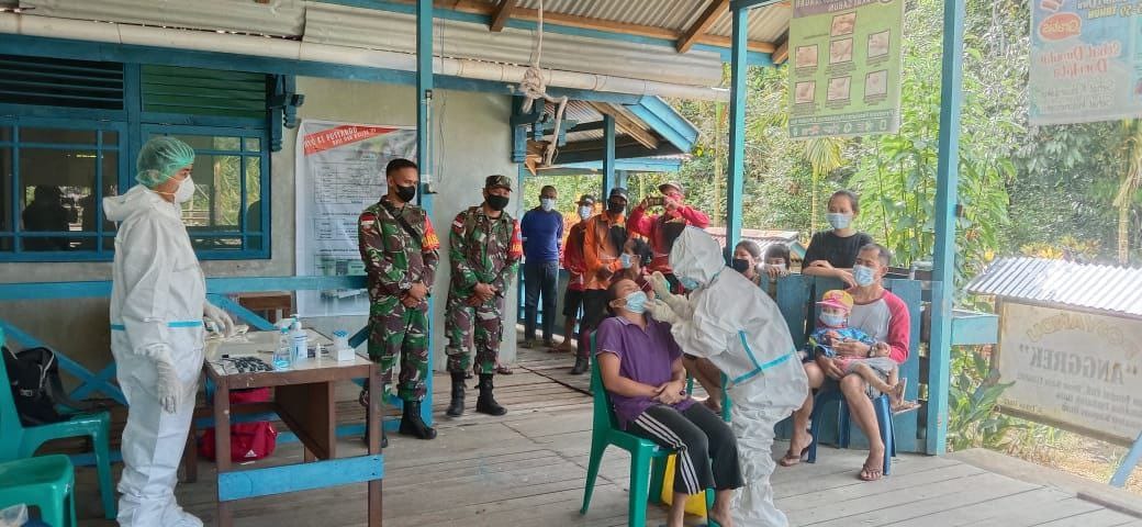 Danramil 1206-05/Embaloh Hulu, Mayor Inf Harsono menjelaskan Tes Swab dilakukan kepada orang yang kontak langsung dengan yang terkonfirmasi Covid-19, nanti hasil dari Swab masih menunggu 1-2 minggu kedepan dari Dinas Kesehatan Kabupaten Kapuas Hulu.