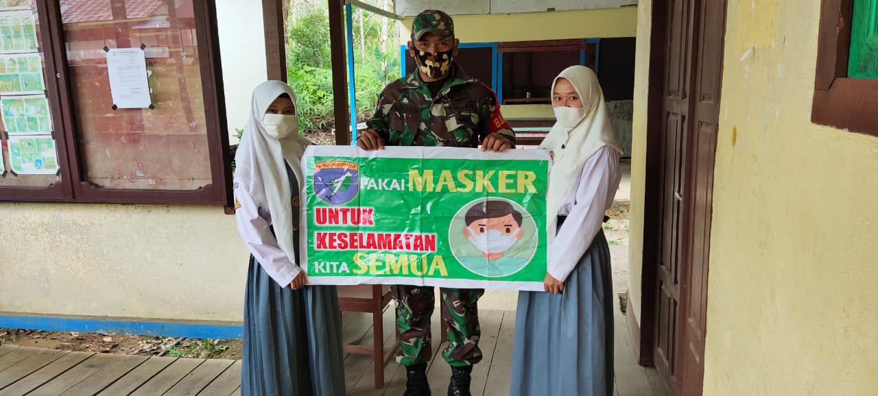 Babinsa Koramil 06/Jongkong Harap Siswa-Siswi Sekolah Menjadi Pelopor Penegakan Protkes Covid-19 Di Desa Nya