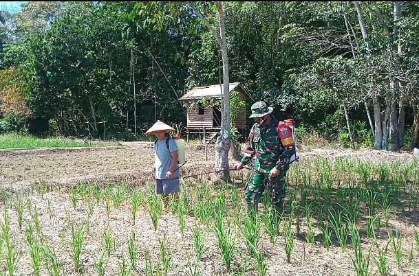 Babinsa Koramil 1206-06/Putussibau Utara Bersinergi Dengan Masyarakat Melaksanakan Penyemprotan Hama Tanaman