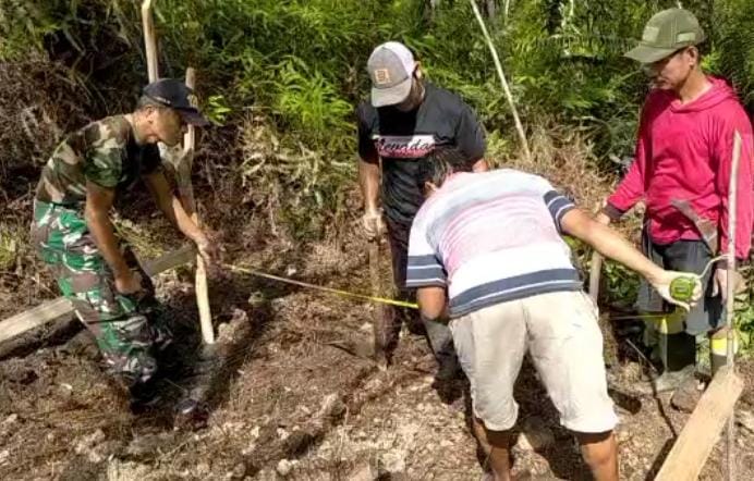 Silat Hulu – PJ Danramil 1206 – 17/Silat Hulu, Serka Adias bersama warga melaksanakan kegiatan karya bakti pembuatan Pos Kamling di Desa Nanga Dangkan, Kecamatan Silat Hulu, Kabupaten Kapuas Hulu, Jumat (11/06/2021).
