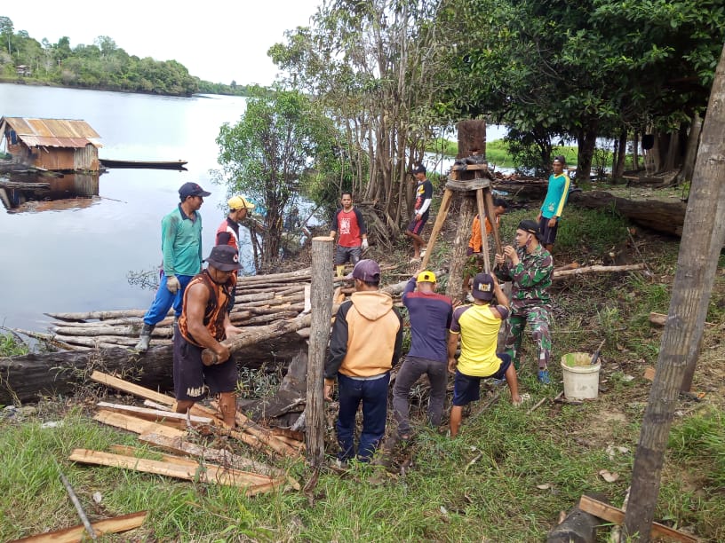 Prajurit Babinsa Koramil  1206-01/Embaloh Hulu melakukan kegiatan Gotong royong membuat jembatan di danau bungkan, Desa Piang Banang, Kecamatan Embaloh Hulu,  secara  gotong royong menjadi tradisi nenek moyang bangsa Indonesia. Sabtu (12/06/21)