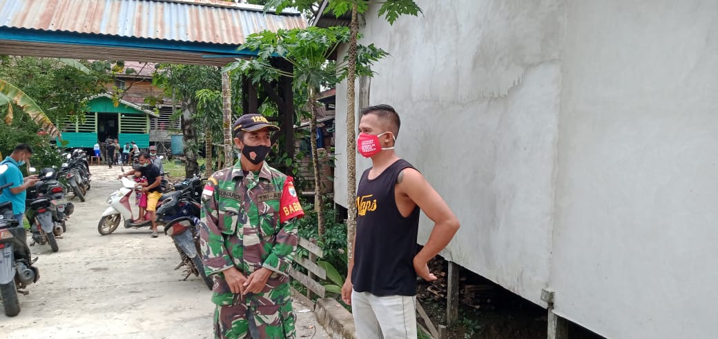 Putussibau – Terus tingkatkan koordinasi dan sinergitas di wilayah binaan, untuk memutus mata rantai penyebaran virus corona serta membahas masalah sosial, Babinsa Koramil 1206-06/Putussibau Utara, Serda Suhardi melaksanakan Komsos ke Desa binaannya bapak Bujang.