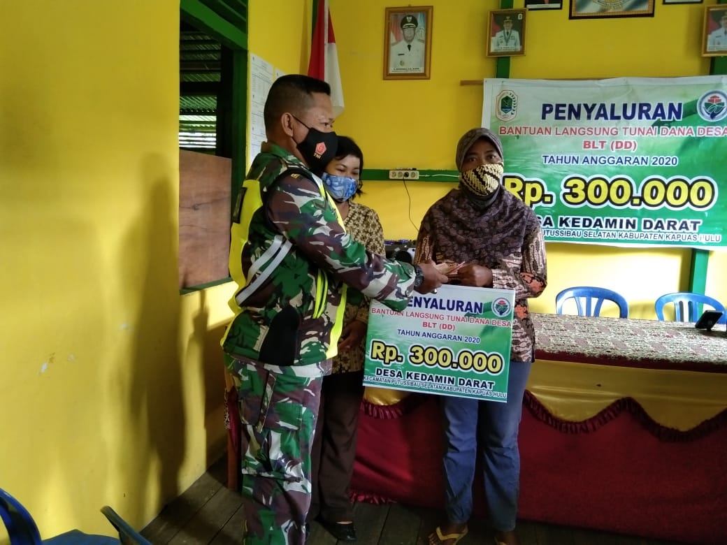 Melalui Babinsa Koramil 1206-06/Putussibau Utara, Serda Doni, melaksanakan monitoring dan pengamanan pembagian Dana BLT DD tersebut yang dilaksanakan di kantor Desa Kedamin Darat.