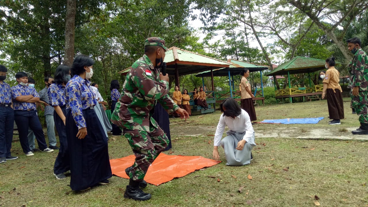 Dandim 1206/Psb menuturkan, Babinsa Serda Dakun koramil 1206-06/Putussibau Utara membantu memberikan materi sekaligus permainan untuk menimbulkan kekompkan sesama teman.