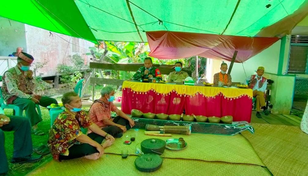 Empanang – Danramil 1206 – 07/Empanang menghadiri Pelantikan Patih/Kepala Adat Desa Nanga Kantuk di Kediaman Bpk Yohanes Bulin, Dusun Kampung Baru, Desa Nanga Kantuk, Kecamatan Empanang, Kabupaten Kapuas Hulu, Selasa (08/06/2021).