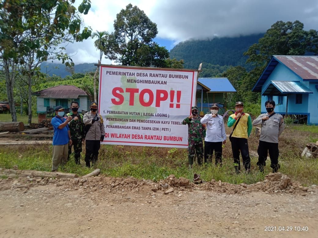 “Kami langsung melaksanakan pemasangan spanduk himbauan berbentuk banner tentang larangan melakukan kegiatan larangan untuk melaksanakan PETI di Desa Rantau Bumbun,” ucapnya.