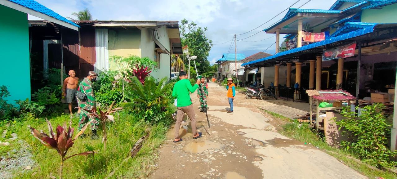 Empanang – Terkait percepatan Pendaftaran Tanah Sistematis Lengkap (PTSL) di seluruh wilayah Kecamatan Empanang, Babinsa Koramil 1206-05/Empamang Kodim 1206/Psb, Koptu Bayu Jmelaksanakan pendampingan Tim PTSL Badan Pertanahan Nasional (BPN) Kabupaten Kapuas Hulu melaksanakan Pengukuran Tanah di Koramil, Kecamatan Empanang, Kabupaten Kapuas Hulu, Kamis (17/06/21).
