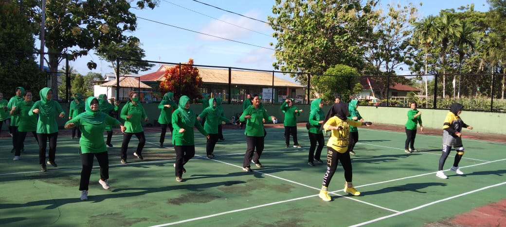Senam bersama yang dilangsungkan di Lapangan Tenis Makodim 1206/PSB, yang di Ikuti Seluruh Anggota Persit dan di pimpin langsung Instruktur Senam, Jumat (04/06/2021).