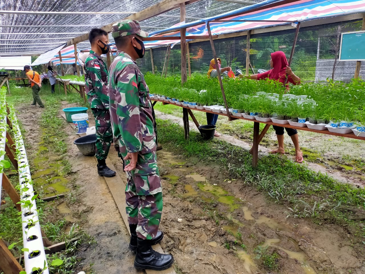 Semitau – Babinsa Koramil 02/Semitau, Kodim 1206/Putussibau Serda Fendi bersama Kopda Agus Rudiyanto dan ibu-ibu PKK melaksanakan panen Sayuran Hidroponik yang bertempat di Desa Masdan Raya, kecamatan Semitau tepatnya di Samping Kantor Desa Masdan Raya, yang merupakan binaan dari ibu – ibu PKK Masdan Raya, Kamis ( 17/06/2021).
