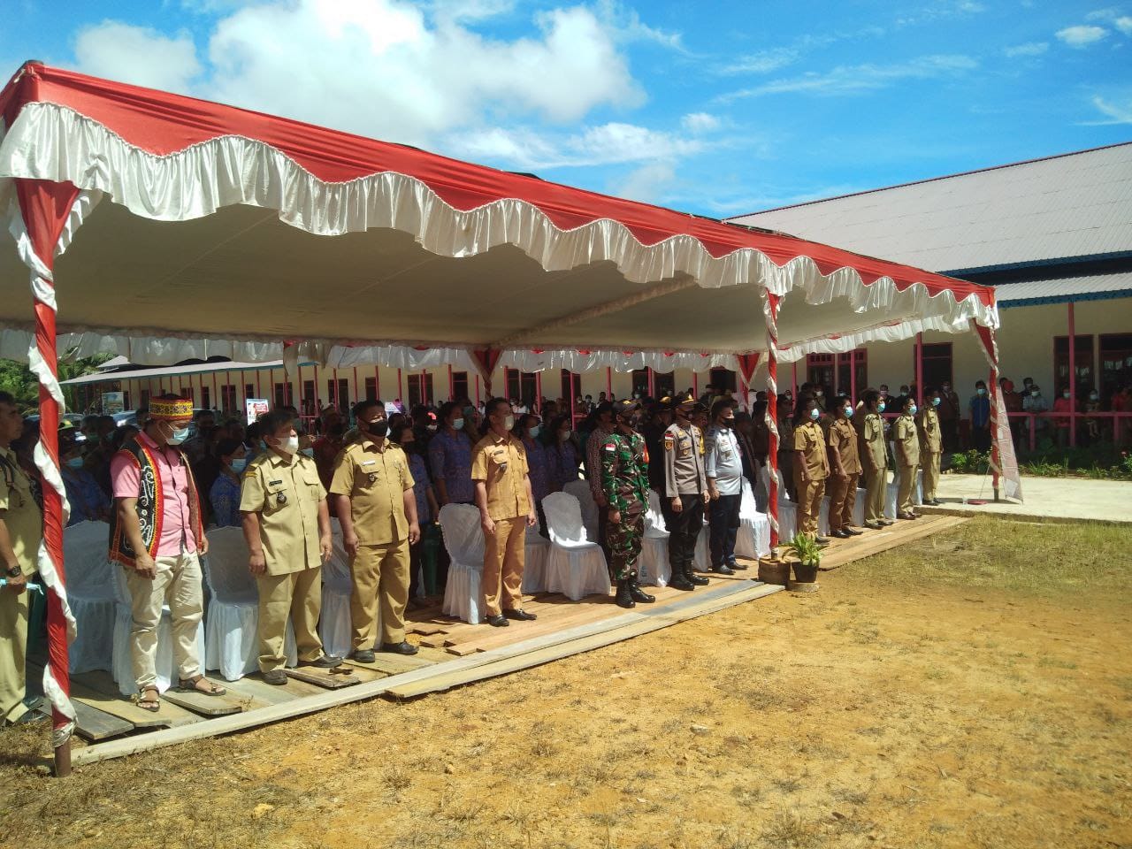 Batang Lupar – Bupati dan Wakil Bupati Kabupaten Kapuas Hulu Fransiskus Diaan beserta rombongan hadiri acara syukuran peresmian Rumah Betang Di Dusun Sawah yang dilaksanakan di Desa Sawah di sambut oleh Muspika Kecamatan Batang Lupar yang didampingi Pj Danramil 1206-03/Batang Lupar mewakili Serma Beni Naptalia Selasa 08 Juni 2021.