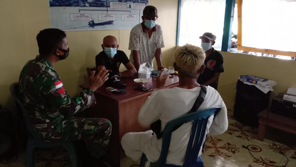 Jongkong – Komunikasi Sosial (Komsos) terus gencar dilaksanakan para Babinsa Koramil 09/Jongkong di masa Pandemi Covid-19,Hal tersebut guna mempererat tali silaturahmi sekaligus memberikan pemahaman terkait 5M.