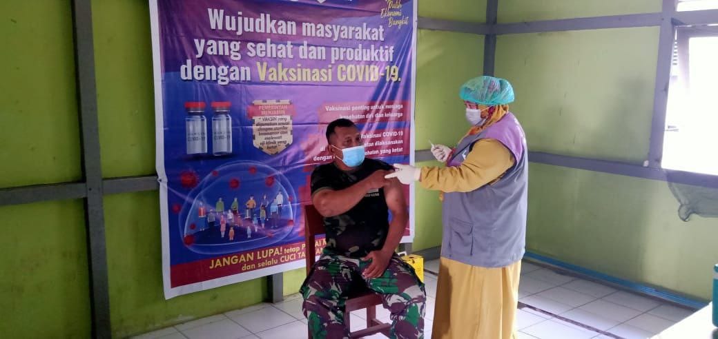 Sementara itu, Sertu Sumadi menjelaskan bahwa tahapan proses vaksinasi ini diawali dengan pendaftaran, kemudian dilanjutkan dengan pemeriksaan kesehatan untuk mengetahui ada tidaknya penyakit bawaan, lalu proses penyuntikan vaksin dan terakhir adalah observasi untuk melihat gejala klinis setelah divaksin.