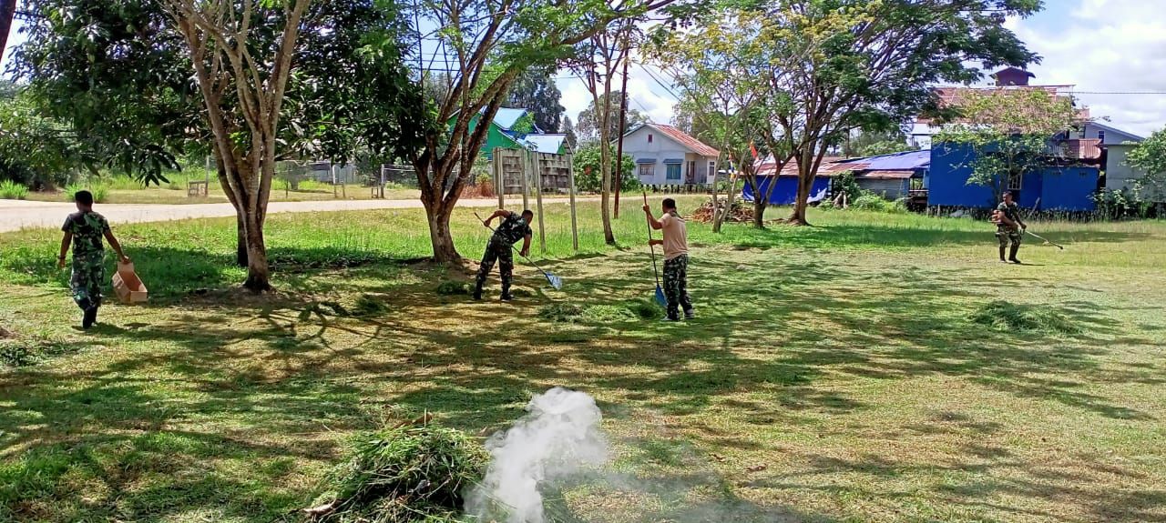 Suhaid – Babinsa Koramil 1206-15/Suaid bersama seluruh anggota babinsa 1206-melaksanakan pembersihan halaman kantor koramil 1206-15/Suhaid di Kecamatan Suhaid, Kabupaten Kapuas Hulu. Minggu(13/06/21).