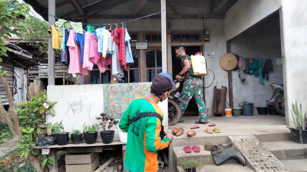 Bersama Tim Satgas Kelurahan Kecamatan Seberuang, Babinsa bekerja sama menggunakan alat seadanya. Penyemprotan kali ini selain rumah-rumah warga juga ke sejumlah tempat tempat umum, Seperti Tempat Ibadah, Warung Kopi, Pusat Perbelanjaan, Tempat Penginapan dan tempat umum lainnya.