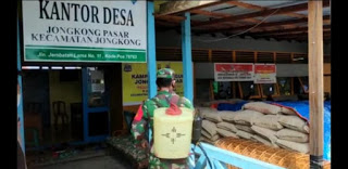 Kades Jongkong pasar Sony.DP,S.Pd menyampaikan Dalam penyemprotan cairan Disinfektan di lokasi pasar ,meliputi Babinsa ,Babinkamtibmas,staf Desa Jongkong Pasar dan di bantu oleh warga setempat ,kegiatan dimulai Pkl 09.00Wib kegiatan tersebut mendapatkan respon positif dari pemilik toko.