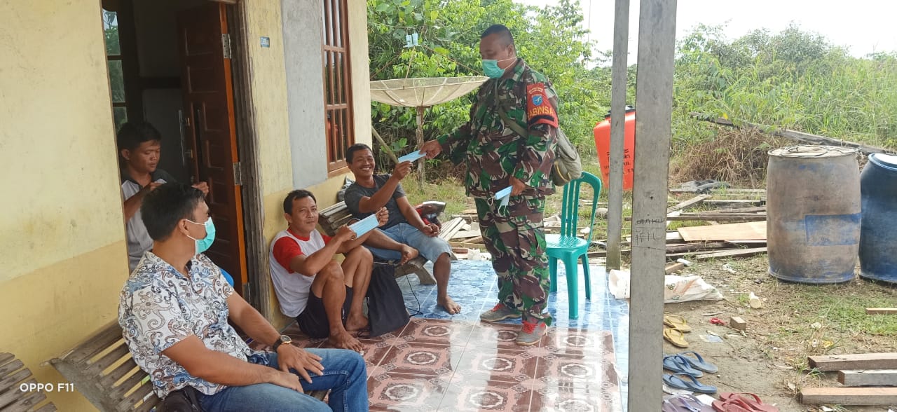 Sambangi Rumah Warga Binaanya, Babinsa Silat Hilir Bagikan Masker Door to Door