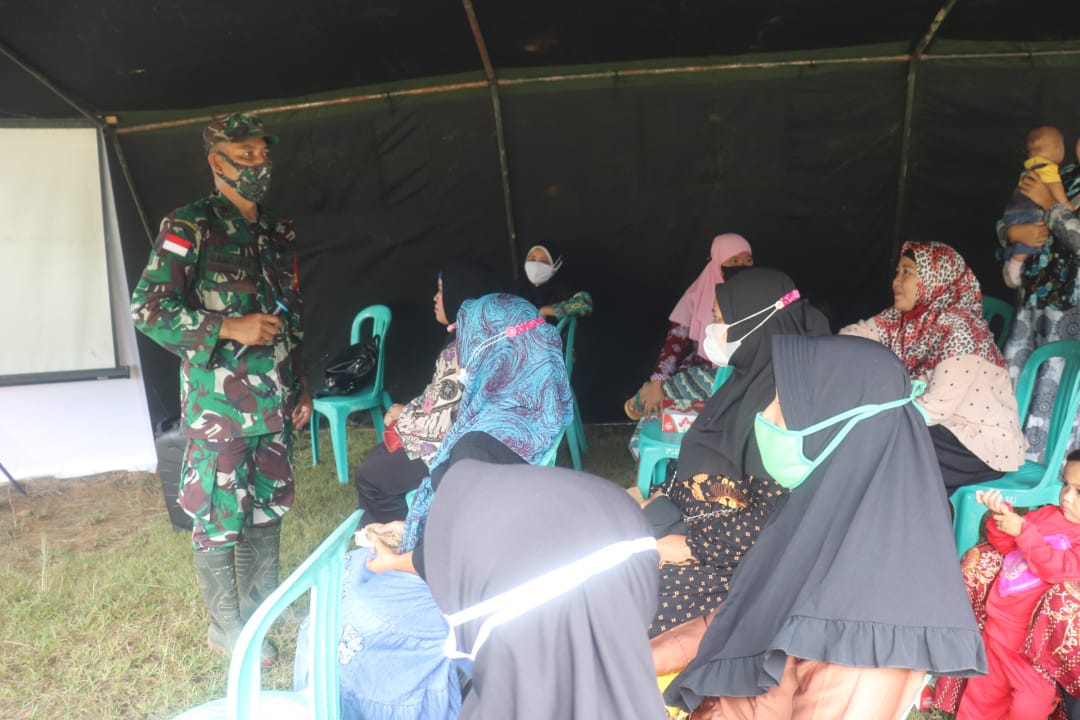 Sosialisasi pencegahan penyebaran Virus Corona tersebut disampaikan Babinsa sertu Dodik didampingi Babinsa Sertu Arwam di posko Covid-19. “Jadi sosialisasi kepada masyarakat apa itu Virus Corona, bagaimana bisa menular,cara pencegahannya seperti apa, salah satunya ada etika batuk, serta rajin mencuci tangan dengan sabun atau cairan disinfektan” kata Babinsa Serka Omen