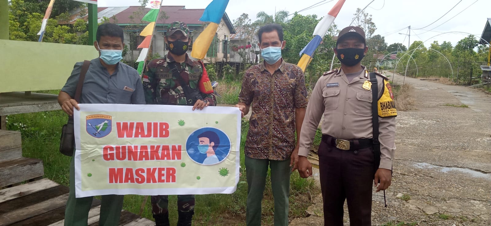 Dalam penegakan Protokol Kesehatan yang mengacu pada 5 M ,Mencuci tangan,Mamakai masker,Menjaga Jarak ,Menghindari Kerumunan ,Mengurangi Mobilitas terus galakkan bersama Satgas COVID -19 Desa demi mencegah penyebaran COVID-19 di Desa Nanga Palin ,Kata Srd Babinsa 1206-01 /Embaloh Hilir.