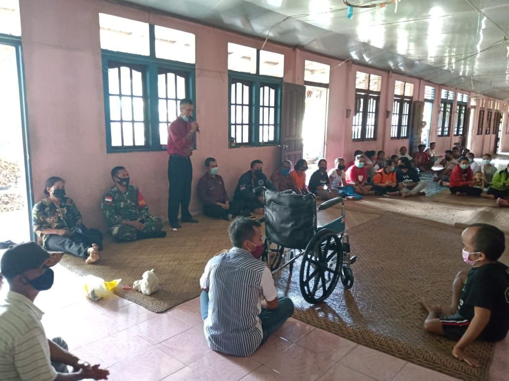 Penyerahan bantuan dilakukan langsung oleh Kepala Desa Sungai Utik kepada penyandang cacat, di Rumah panjang Dusun Pulan,Desa Sungai Utik, Jumat (04/03/2021).