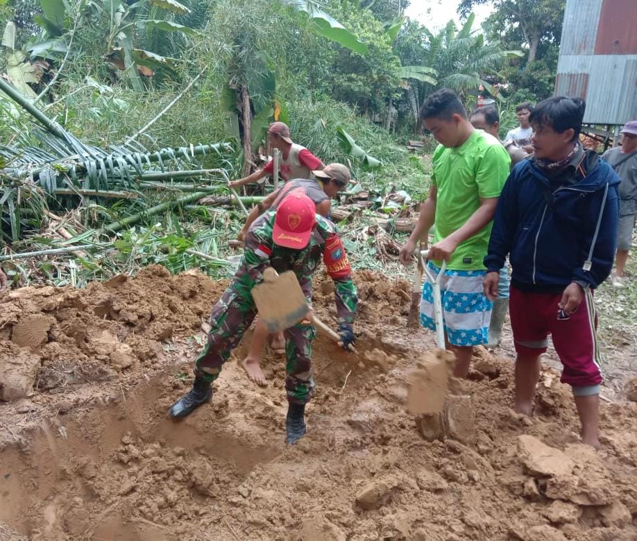 Embaloh Hulu – Wujudkan kepedulian kepada warga di wilayah binaannya, Babinsa Koramil 05/Embaloh Hulu Kodim 1206/Putussibau Serda Sutomo membantu warga menggali kubur untuk pemakaman Alm Hendrikus Ambau warga Desa Ulak Pauk, Kecamatan Embaloh Hulu, Kabupaten Kapuas Hulu, Kamis (10/06/2021).