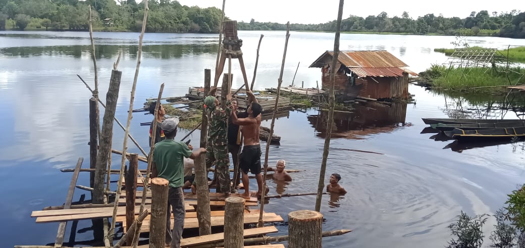 Kegiatan pembuatan bangunan tersebut bersumber dari Swadaya masyarakat bertempat Tepian Danau Bungkang, Desa Nanga Embaloh, Kecamatan Embaloh Hilir, Senin (07/06/2021).