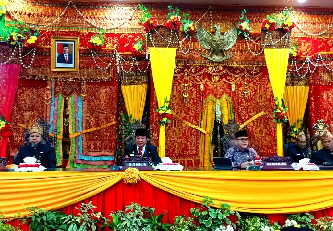 Walikota Helmi Hasan menyampaikan kata sambutan, dalam rapat paripurna, sekaligua menyampaikan ucapan terimakasih kepada Menpan-RB atas kehadirannya di kota Bengkulu.