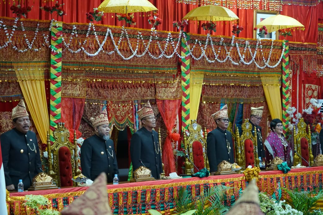 Berandang.com – Rapat Paripurna dalam rangka Hari Ulang Tahun (HUT) ke-57 Provinsi Bengkulu digelar di Gedung DPRD Provinsi Bengkulu, Selasa (18/11) pagi. Gubernur Bengkulu Helmi Hasan hadir mengenakan pakaian adat Bengkulu bersama istrinya, Khairunnisa. Keduanya tiba di kantor DPRD dengan menggunakan delman, didampingi Wakil Gubernur Mian beserta istri, Eko Kurnia Ningsih.