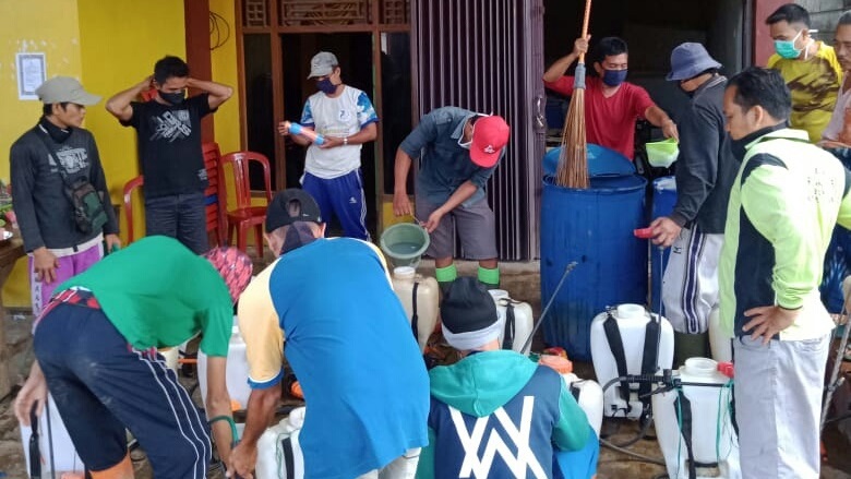 Sayadi selaku Kepala Desa menuturkan, kegiatan pencegahan ini telah kita laksanakan, selain dari relawan karang taruna dan warga, ada juga 6 orang relawan dari perusahaan sawit yaitu PT. ELAP, yang bersedia membantu dalam penyemprotan cairan disinfektan ini” Terangnya.