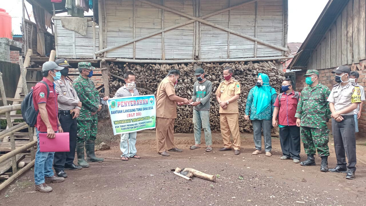 Pelaksanaan acara penyerahan Bantuan Langsung Tunai Dana Desa (BLT-DD) tahap I secara simbolis dan langsung kerumah-rumah warga dalam percepatan penanganan Corona Virus Desease (Covid-19).