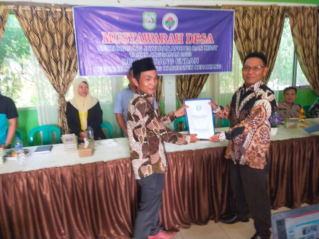 Kegiatan ini turut hadir yaitu Kepala Dinas BPMPD melalui Sekretaris, Babinkamtibmas, Babinsa dan, Kepala Desa, TP-PKK, Ketua BPD dan anggota, serta seluruh perangkat Desa Karang Indah, Kecamatan Kepahiang, Kabupaten Kepahiang, Provinsi Bengkulu yang berlangsung di Kantor Desa setempat.