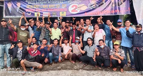Berandang-com. Kepahiang. Tim Pemenangan Paslon nomor urut 02 Kecamatan Bermani Ilir (Korcam) bersama koordinator Desa se Kecamatan Bermani Ilir hadir dalam kegiatan pemantapan pemenangan Pemilihan Bupati dan Wakil Bupati Kabupaten Kepahiang (Dayat – Nata) yang diselenggarakan di Posko Dayat Nata, di Kelurahan Keban Agung Kecamatan Bermani Ilir, Kamis sore (3/12/2020).